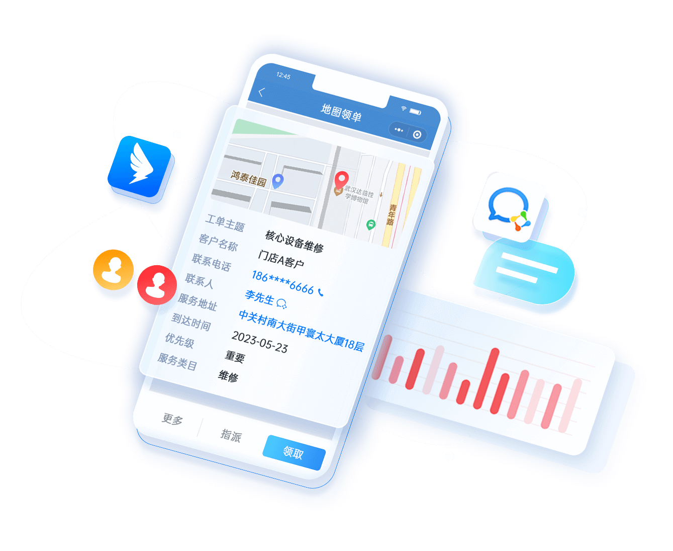 • 按區(qū)域/工單類型/產品類型進行地圖派單、手動派單和工單池搶單